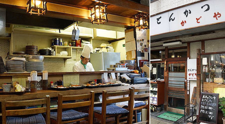 仕事途中にランチをしましょう…、それでちょっと散歩がてらに若松町にでかけてランチ。「かどや」という店にやってきました。