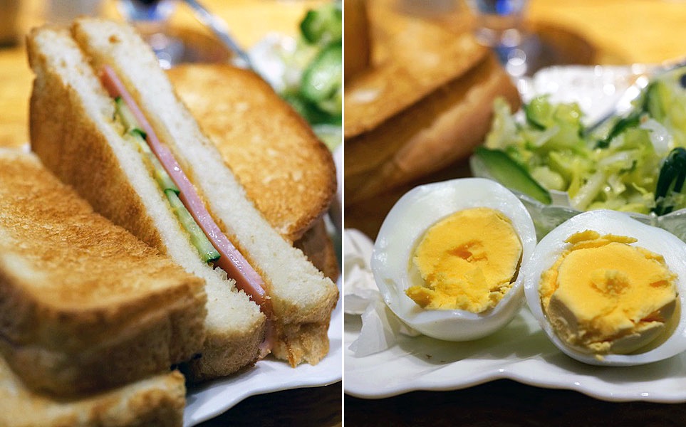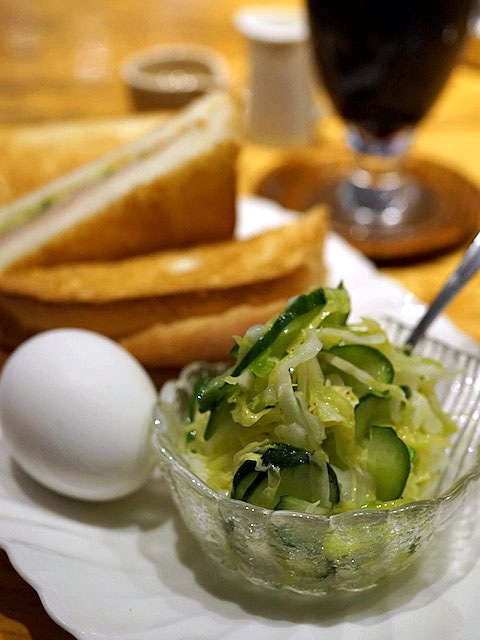 具材の量は最小限で、なのに口の中でハムやキュウリの存在感を感じる不思議…、パンがおいしく、しかもしっかり焼かれているからコントラストが強いのでしょう。