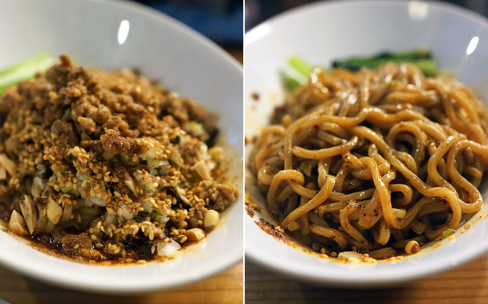 汁なしだと、太くてよじれた麺を使ってつくるから、茹で上げ時間に若干かかる。