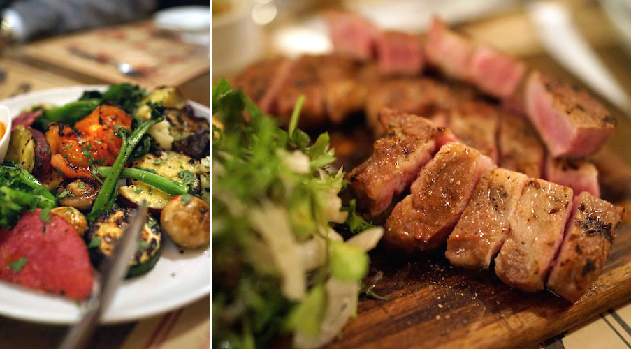 野菜のグリルに豚のステーキでおいしい時間は最高潮。
