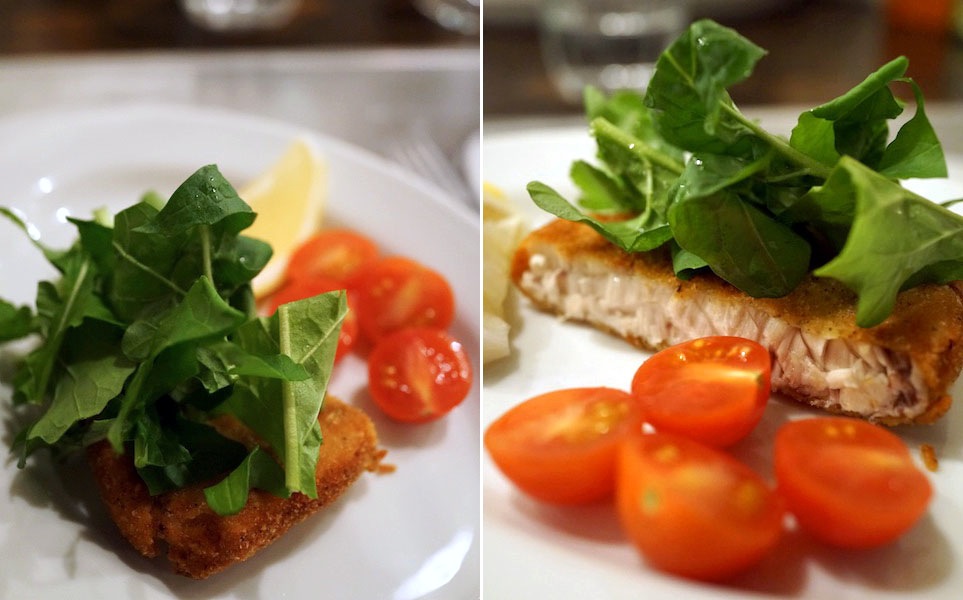 骨付きの子羊肉に細かなパン粉をギッシリまとわせガリッと揚げた男ぶりの良い料理で、今日もメニューにあった…、けれどカジキのカツレツは初めてで、こりゃ食べてみねばとそれで思わず。