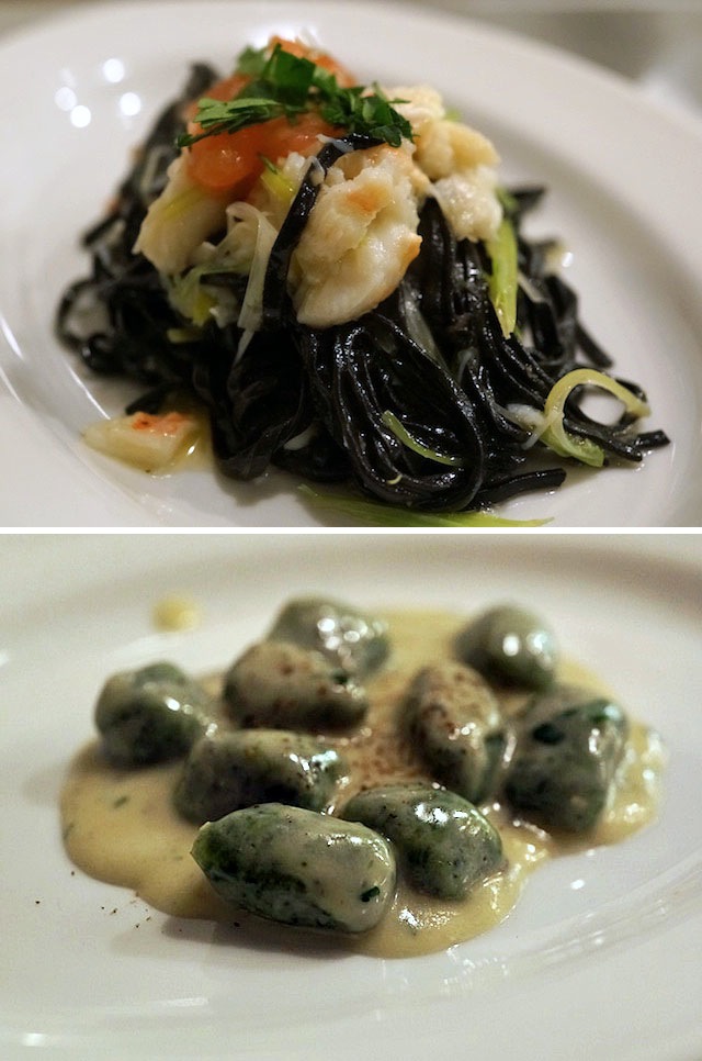 イカスミを練りこんだ平打ち麺を使ったパスタ。