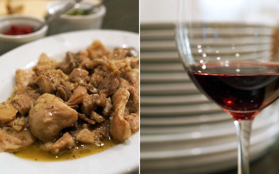 ムッチリとしたゼラチン質がネットリパスタにからんでうまい…、これも今日のワインにピッタリ、肉好き唸る男な料理にウットリします。