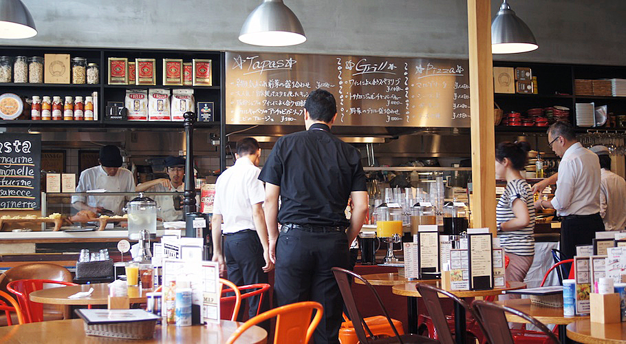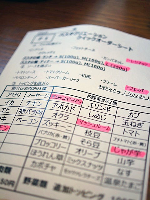 オーダー伝票がテーブルの上に用意されてて、そこにマーカーで印をつけてく。
