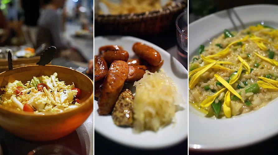 それからチョリソをこんがり焼いて、ザワークラウトを添えたモノ…、焼くべきものは焼き切るくらいにしっかりと焼く、ココの料理はボクの好みのオキニイリ。