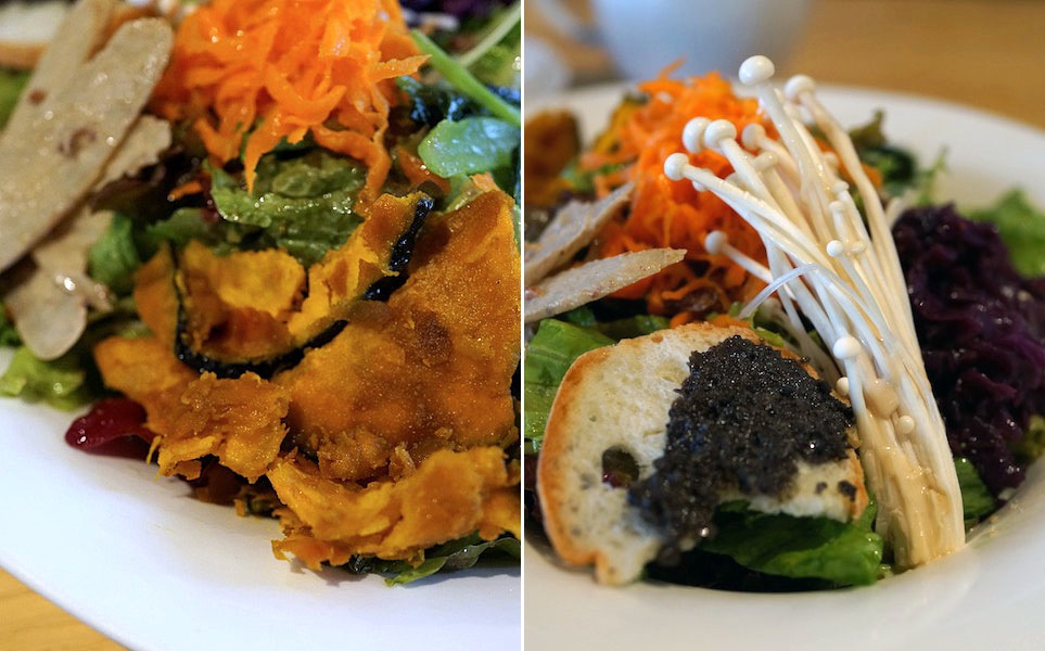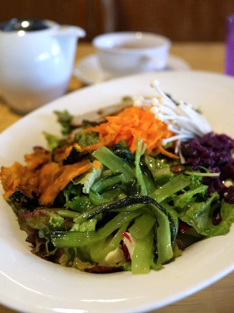 サラダと言っても生の野菜はその一部…、レタスにチコリ、それからエノキぐらいかなぁ。それ以外は加熱調理されているのが、体にやさしい感じをこれまた引き立てる。