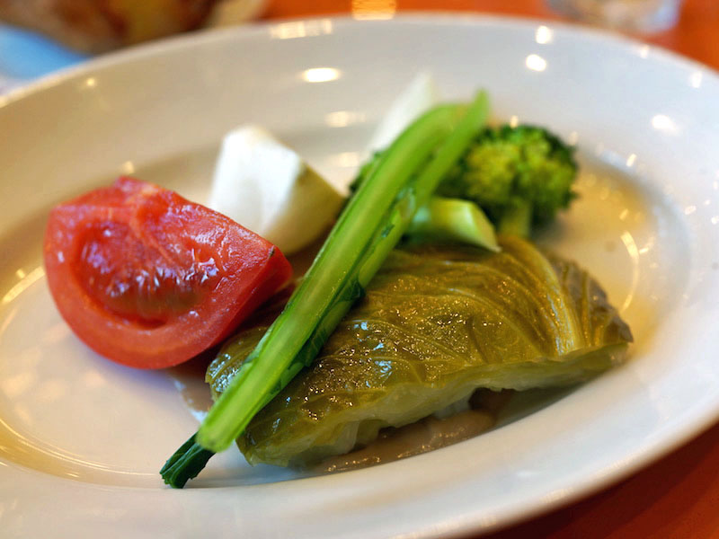 蕪や青菜にブロッコリ。キャベツを茹でてバーニャカウダのソースを添えたものでこれが案外おいしい。