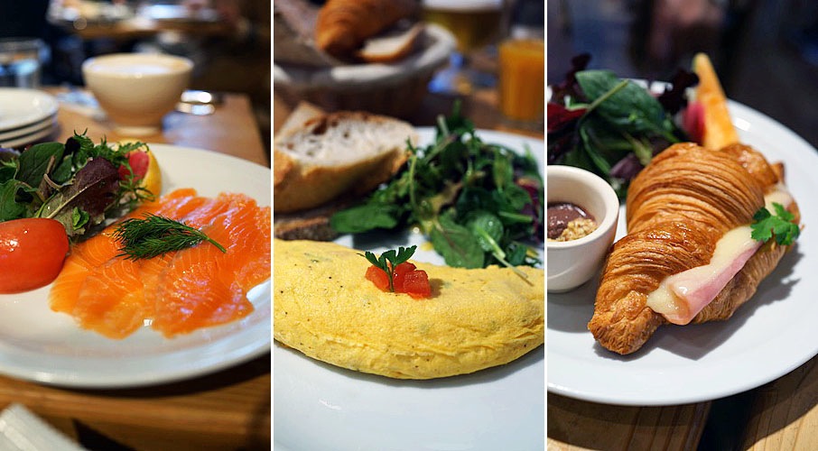 他にも朝の料理がいくつか…、脂ののったスモークサーモン、ハーブのオムレツ、ハムとチーズを挟んだクロワッサンのサンドイッチとどれもパンにピッタリ料理。