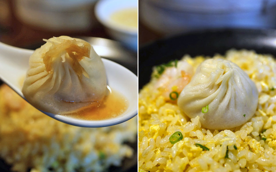 玉子をまとった黄金色のチャーハンの、パラパラ口にちらかる感じに、小籠包のネットリとしたトロミが混じって、気持ち豊かなオゴチソウ。