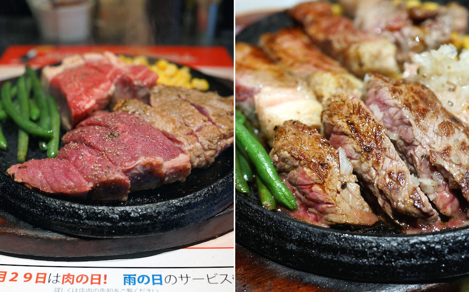 注文すると塊肉から一人前分を切り出して、鉄板の上にそれを盛りつけ、ガンガン焼いて出してくる。
