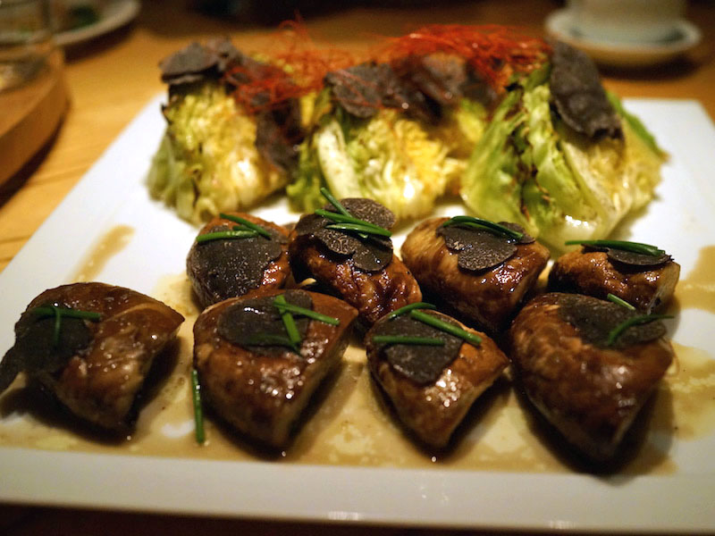 大きな椎茸を焼き上げ最後にバターソースとトリュフをかざる。ムッチリとしたキノコの食感がなんとも旨い。