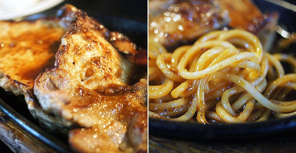 生姜焼きの下でジリジリ焼けていたナポリタンに生姜醤油が混じってこれが、ご飯のオカズにピッタリ味になっていくのもたのしくて、何よりご飯がスベスベ旨い。