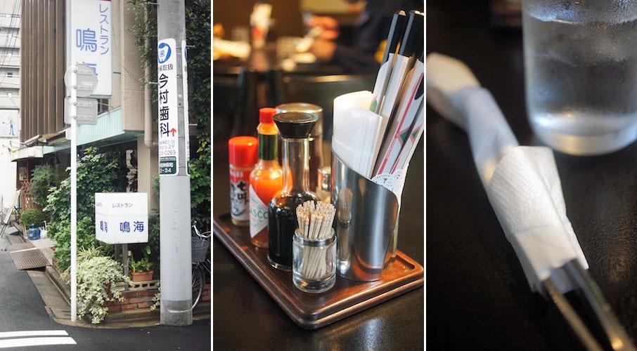 お冷グラスはピカピカで、ソースや醤油、タバスコなんかの瓶もキレイに磨き上げられ並んでる。