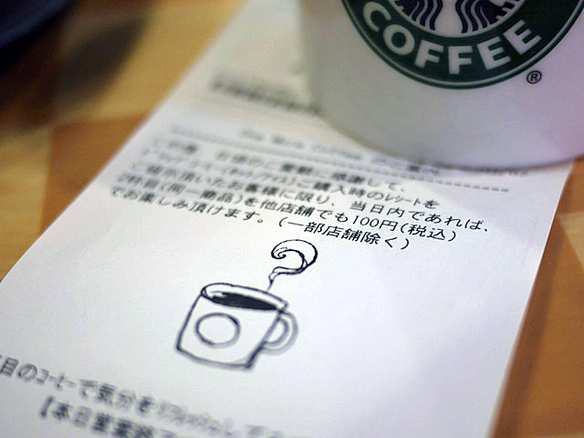 このレシートを持ってれば、今日に鍵って同じ飲み物を100円で飲めるっていう。