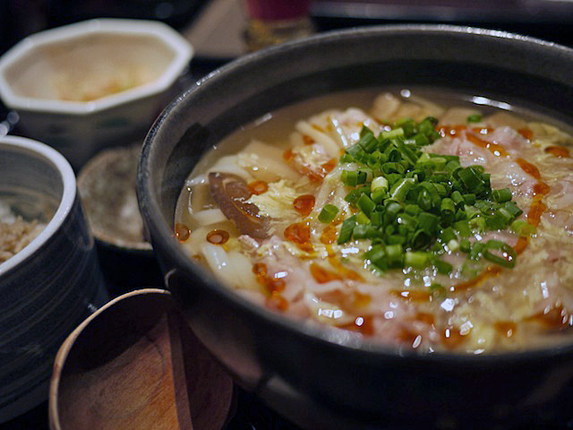 豚肉とタケノコ、シイタケのあんかけ卵とじうどん。