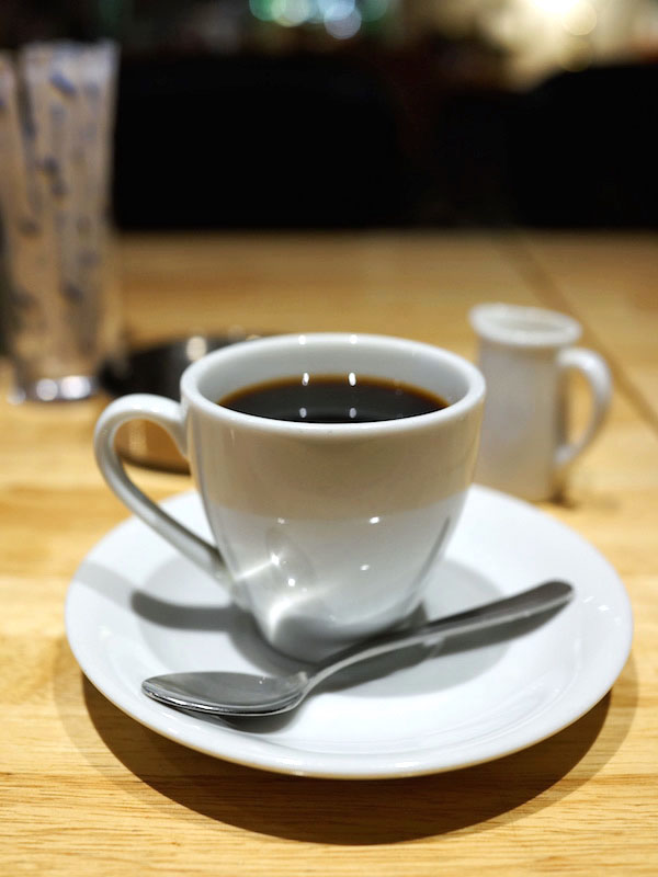 大きすぎないサイズ感。指でひっかけスッと上がって、口につけると程よく厚い。中に熱々のコーヒーを入れても唇焼かないカップが、まさに昔の喫茶店的。酸味の強めのコーヒーの味もボクの好きなコーヒーの味。