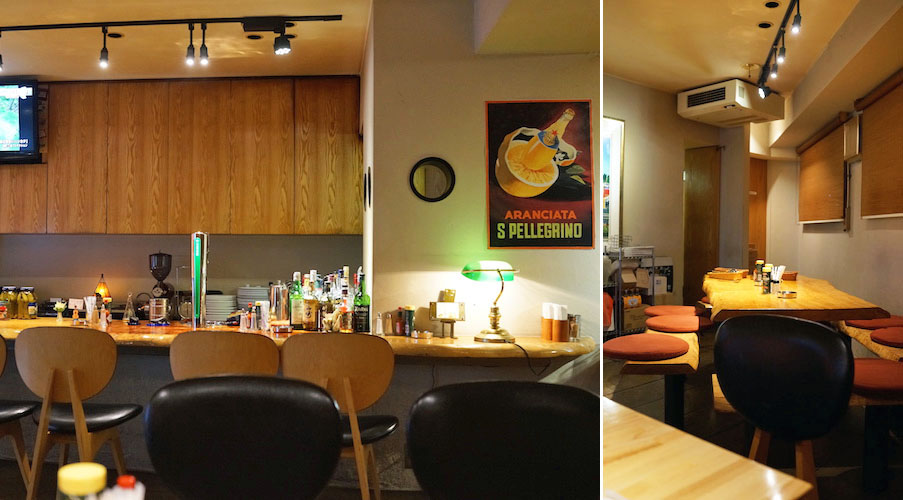 オキニイリの喫茶店。とはいえ店名は「カフェライン」。ランチタイムはパスタがおいしく、夜にはお酒やつまみも揃う。