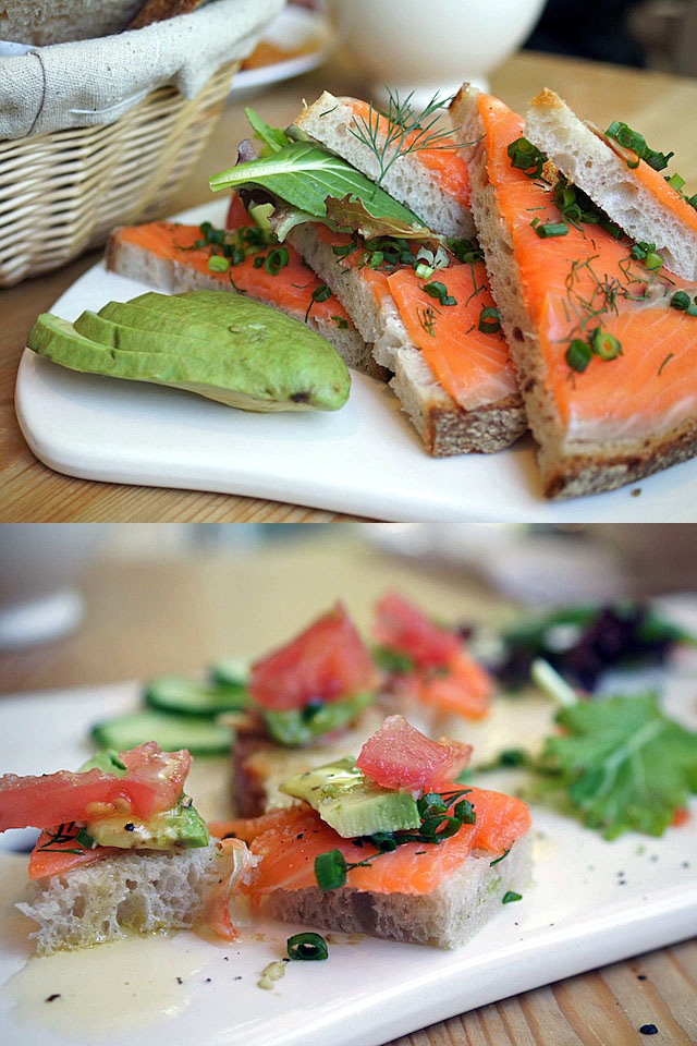 せっかくだからもう一つ、別の素材のタルティーヌをたのんでみましょうと、選んでみたのがスモークサーモン。