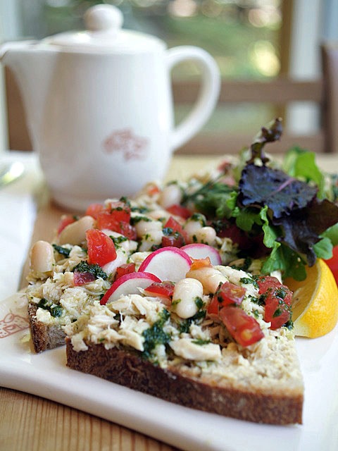 ツナのサラダをのっけて、茹でた白いんげんをパラッとちらす。