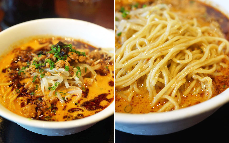 細い麺。縮れがなくてキリッと冷たい水でしめてて、ゴリッと固い。ザクザク歯切れる食感痛快。深い旨味のスープに練りゴマ。赤唐辛子の辛味スープに山椒、それからラー油をタラリ。豚ひき肉の炒め物にモヤシにネギがのっかっている。