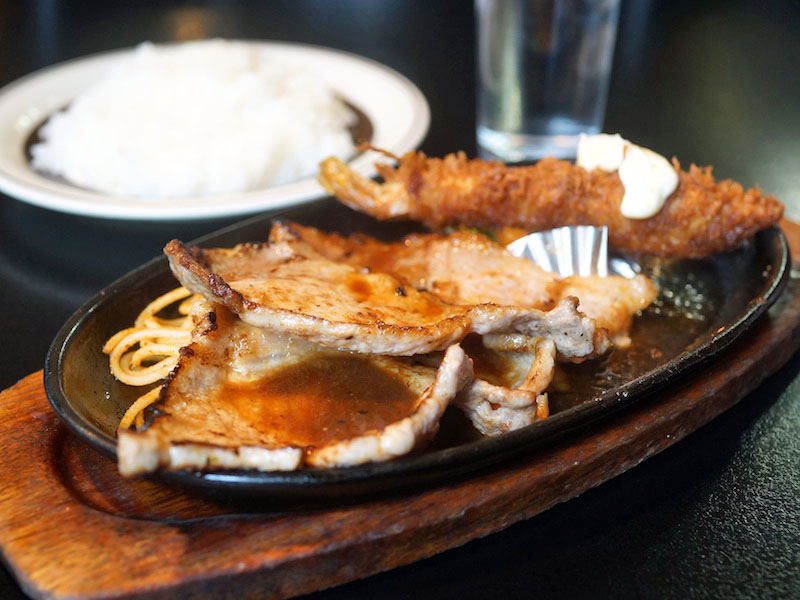 生姜の香りが明るくただようソースがグツグツ、音を立てつつ沸騰し、湯気の向こうによじれるように焼きあがった豚ロース肉。