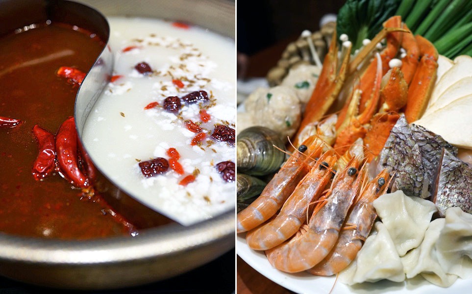 インヤン型に2つにわかれた鍋に赤と白いスープがなみなみと。