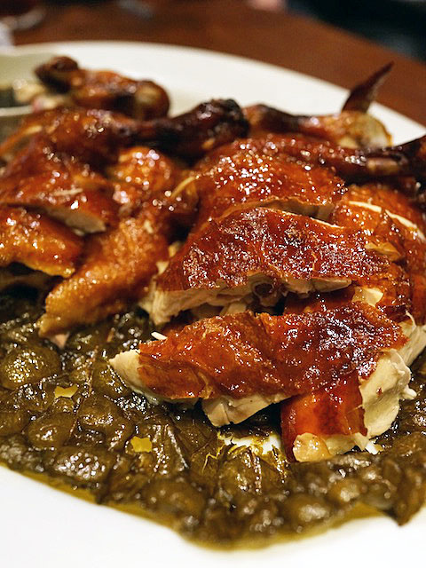 フックラ蒸した丸鶏に、沸騰させた油をかけつつ皮をパリッと焼き揚げたモノ。