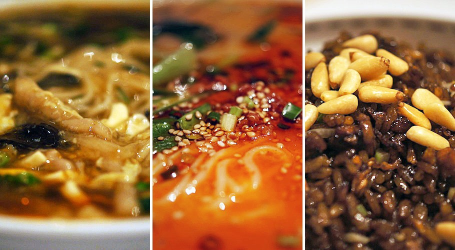 スーラータンと坦々麺、それにココの名物チャーハンの中国醤油で炒めたモノ。