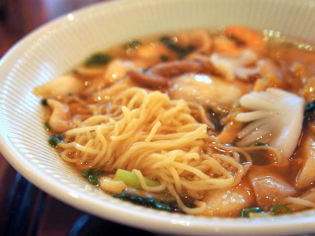 香港式に細くて若干縮れをもったシコシコの麺。