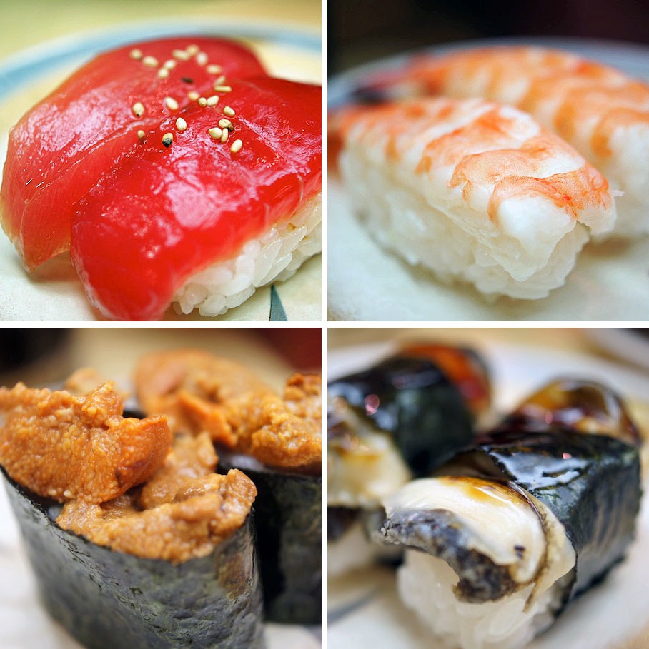 キラキラしてて、しかも同じネタで一度ににぎられるのは3、4個だけで、いろんな寿司がバランスよく流れてく…、ほとんど「あれを握って」って注文しなくてたのしめる。