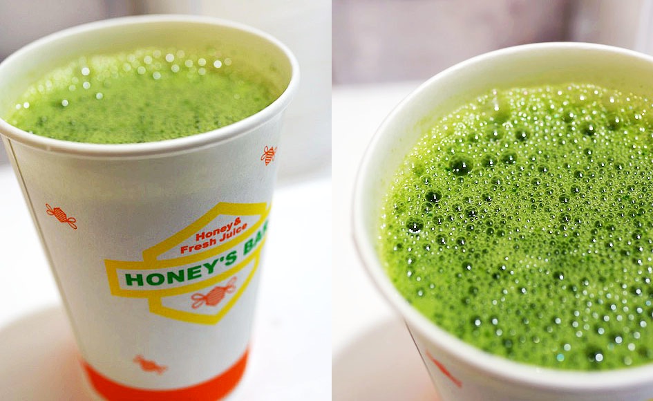目的の前に野菜のようなものをお腹に入れておきたいと、みたらばなんと「小松菜ジュース」があるではないの…、小松菜をそのまま繊維を残してジャジャっとマンゴーと一緒にジュースにしたもの。