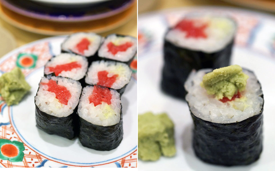 巻物とはいえ、なかなかシッカリしたマグロ。脂がほどよくのっていて、わさび強めでとお願いしたら、見てわかるほどに緑な状態。しかもサイドにわさびをたっぷり。のっけるように一杯のせても、辛味を感じぬほどにマグロの脂が旨い。