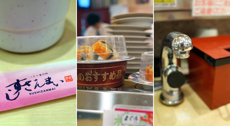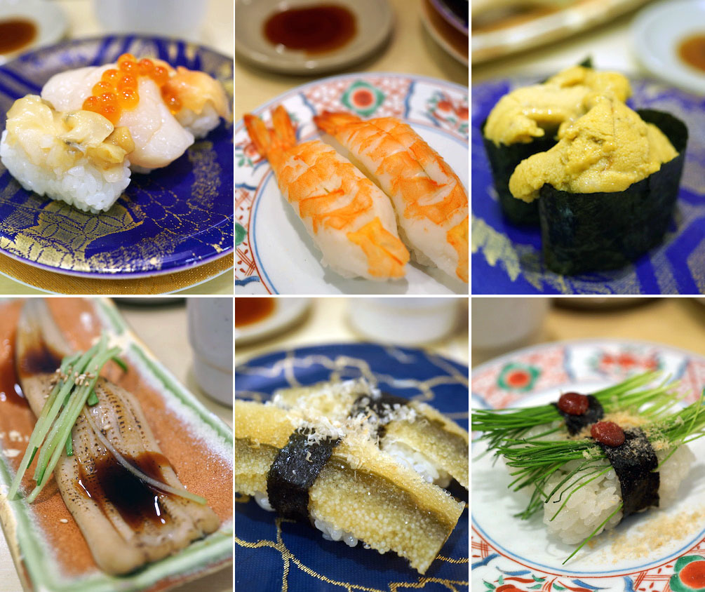 場所柄外人客が多いようで、回る寿司の上にカバーがのっかっている。海外の回転寿司にいくと大抵、こういうスタイル。