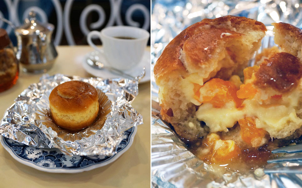 シットリ重たく、舌にのせるとジュワリとラム酒がにじんで流れ出してくる。ポッテリとしたカスタードと、ざっくりとした生地が口にひとつにまじり、大人の時間のよきお供。