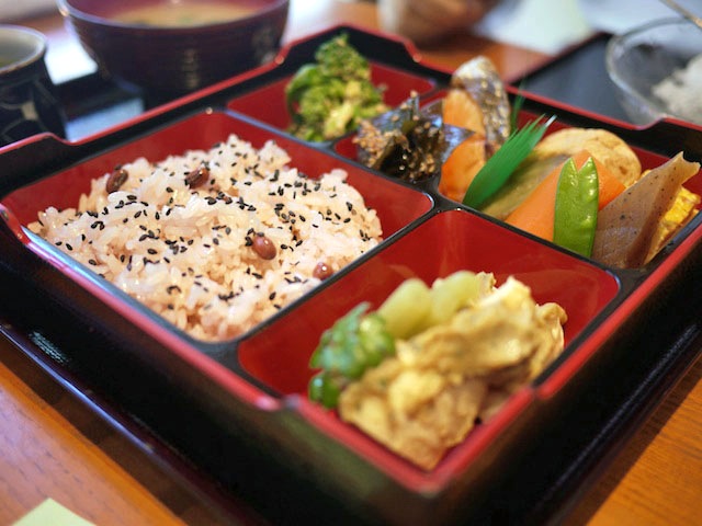 今日のご婦人方のほとんどがお赤飯が入った松花堂をうれしそうにつついてて、これはやっぱり試してみなくちゃと、それで一個、とってみんなでシェアーする。