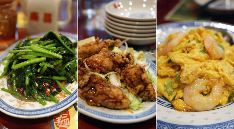 やっぱり野菜を食べなきゃね…、と、ほうれん草と桜えびを炒めた一皿。塩は控え目、エビの旨みが物足りなさをかき消している。赤唐辛子の辛味もビリッとおいしくて、シャキシャキとした食感たのしいオゴチソウ。