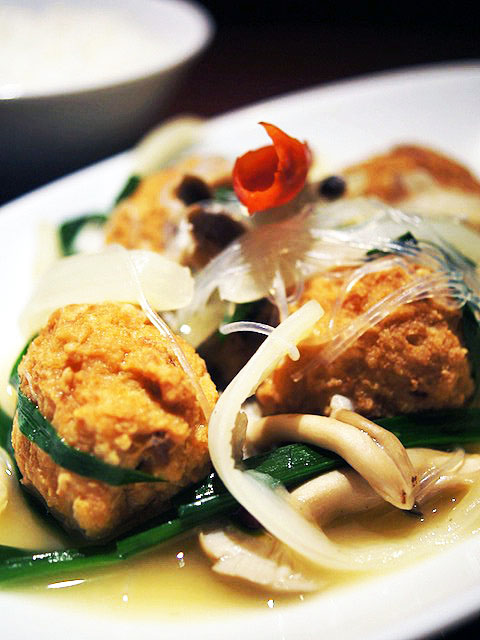 カリッと揚げて、それを塩味スープで煮込んだモノで、フックラしてて前歯を必要とせぬなめらかさ…、みずみずしくて口の中でホロッとほぐれて消えていく。