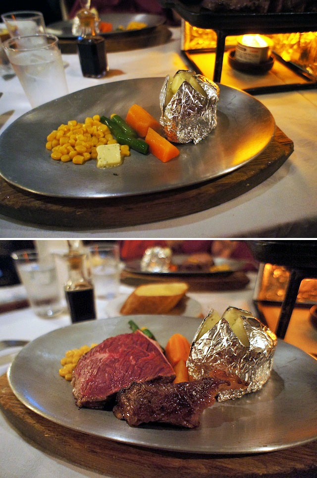 これもチンチンに焼けていて、そこに肉を一切れおくと、ジューッとおいしい音がする。