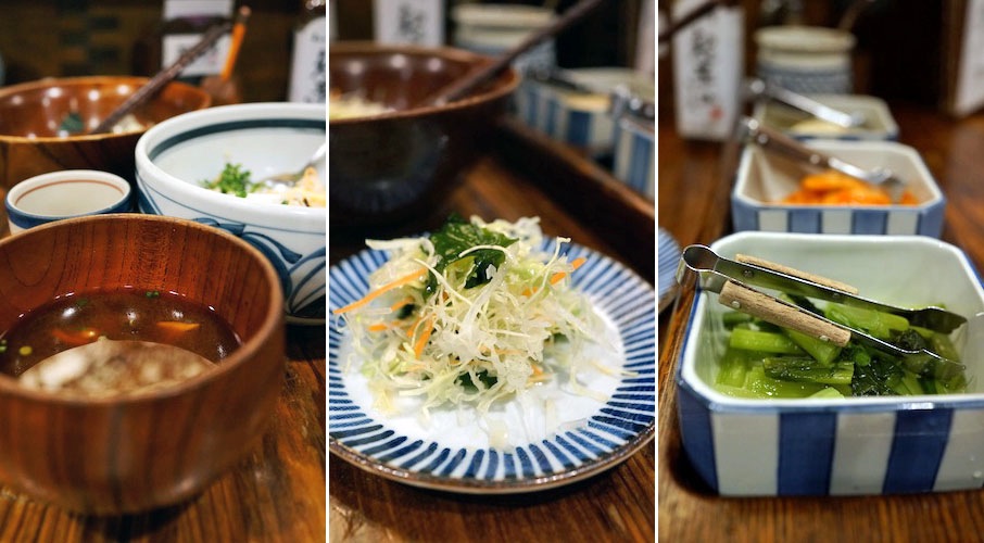 漬物だって3種類がそれぞれタップリ、無くなったらば補充もされる…、濃厚出汁と酸味おいしい赤出汁もお替りできるというのがこれまたアリガタイ。