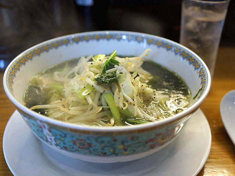 コシのしっかりした麺が、塩味スープをたぐりよせては、口の中を潤していく。