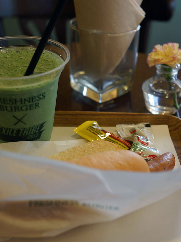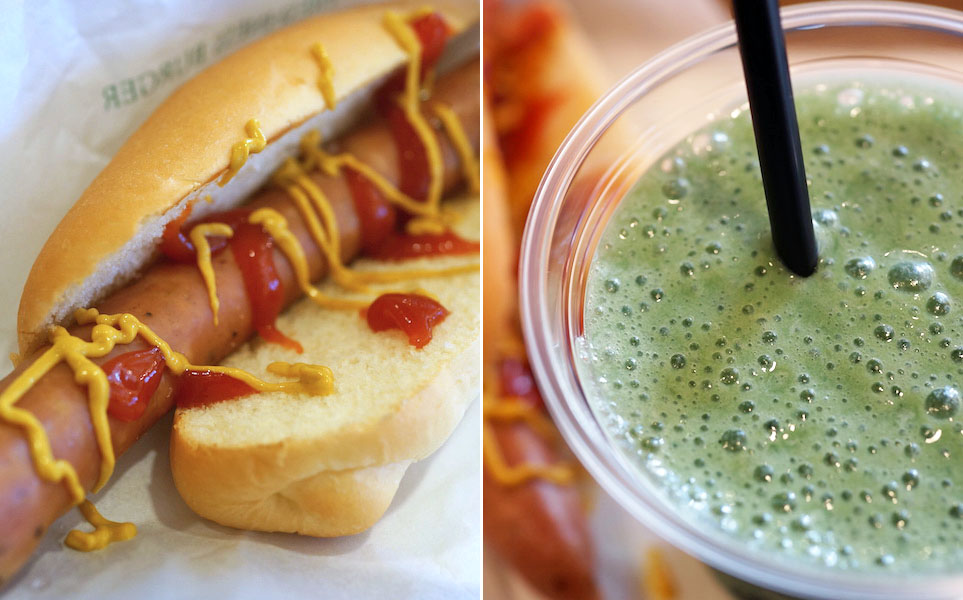 ホットドッグとスーパーフードを使ったグリーンスムージー。