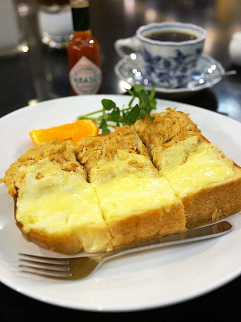 今日選んだのは、ツナとチーズのトーストと温かいコーヒーの組み合わせ。