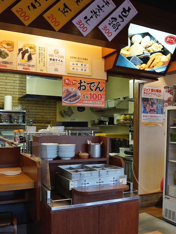 おでんの鍋の中を覗くと昨日の夜からずっと炊かれていたおでん種。色よく、クツクツ、体を揺すって食欲さそう。