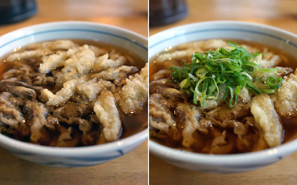 甘辛煮込みの牛肉に、出汁をタップリ吸い込んで、膨らみ油の旨みを滲ますごぼう天。ゴツゴツとしたゴボウの食感、土の香もおいしくて、朝のお腹が出来上がる。