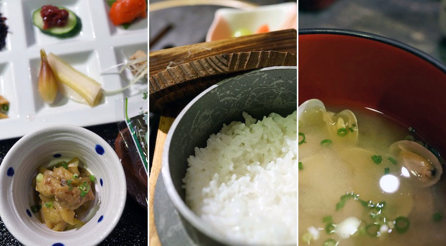 お米がツヤツヤ、ひとつぶひとつぶ立ち上がる見事に炊けたご飯をタップリ…、それだけ食べても甘みが十分おいしくて、しかもおかずがやさしくおいしい。