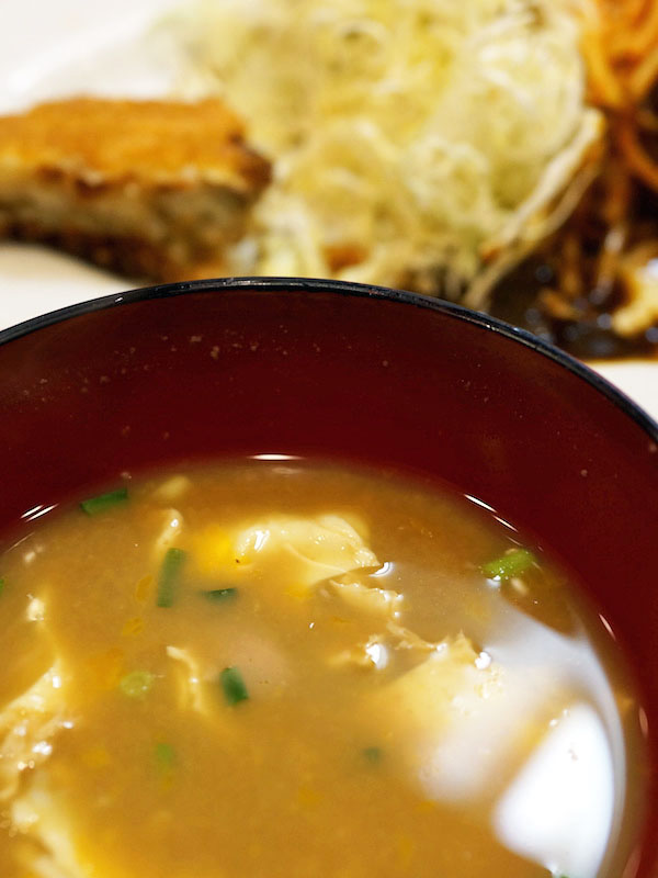 こってりとした味わいの赤味噌使った赤出汁に、中に1個、卵を落として仕上げてる。注文するたび、作ってくれるできたてで、だから熱々。