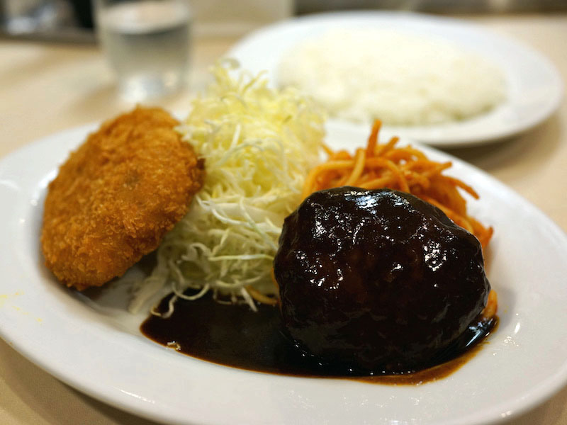 楕円のお皿にキレイに盛られた、典型的なる洋食屋さんのランチの姿。ツヤツヤかかったデミグラスソースの色艶、香りにウットリします。