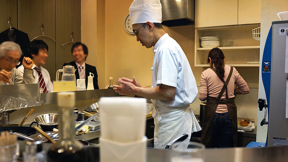 油を使って揚げ物を揚げ、肉をソテする洋食屋にして、厨房のステンレスはピカピカ見事に磨かれている。
