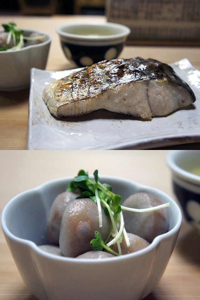 おかずはサワラの塩焼きにし、一汁一菜の夜のできあがり。
