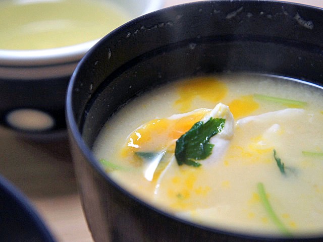 最初はトロトロ、ほぼ生で、それがみるみる熱々の汁の中でチリンとやさしく火が入る。